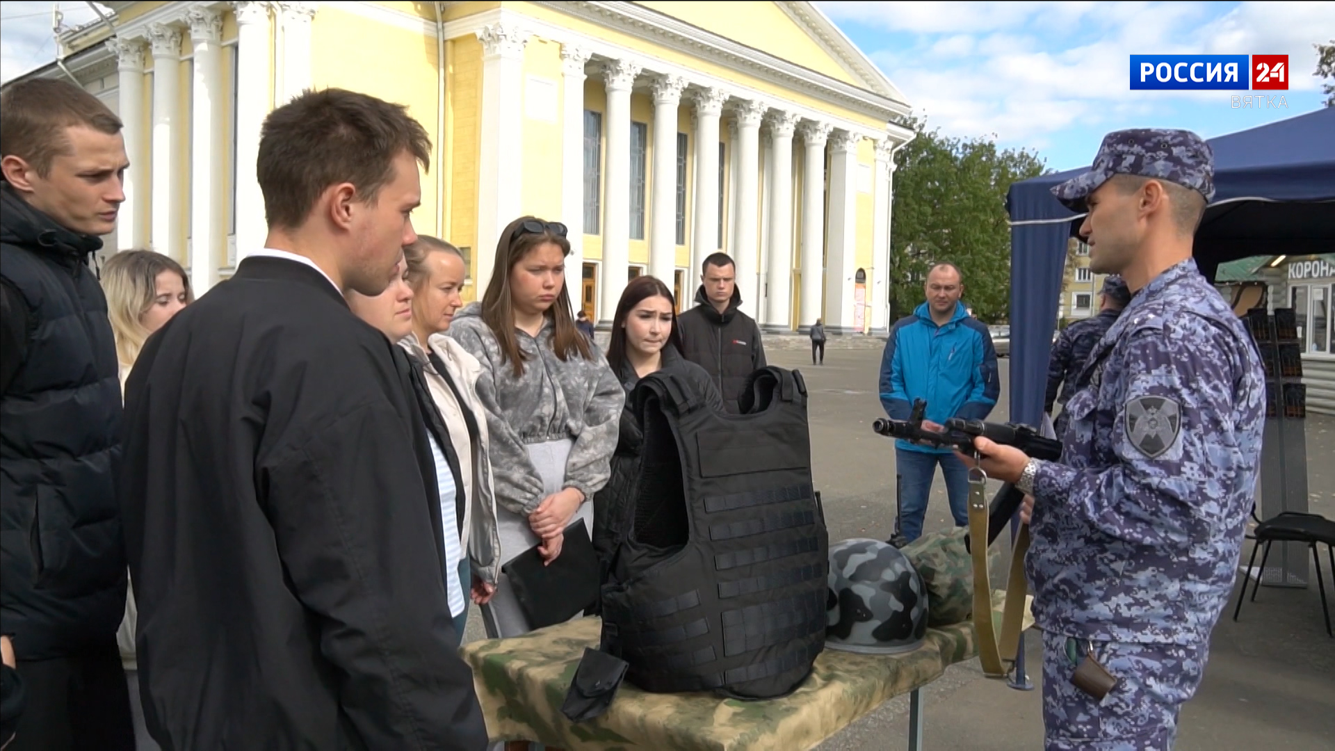 «Представлены спецсредства, макеты оружия, бронежилет, каска, желающие могут попробовать неполную разборку пистолета Макарова и автомата Калашникова — людям это интересно».
