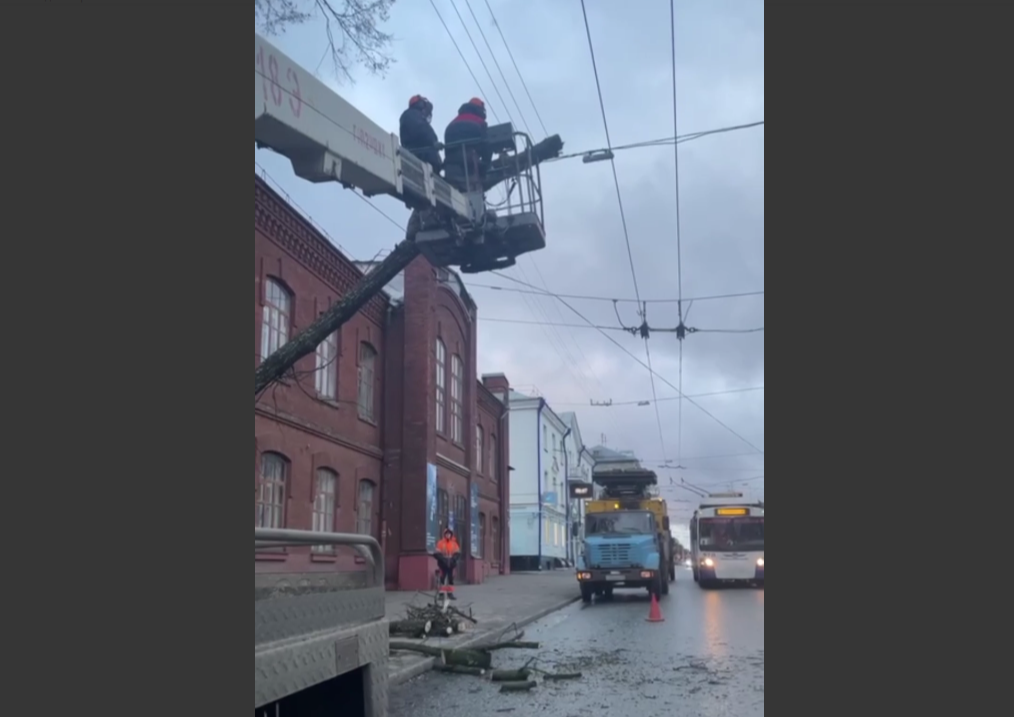 В Кирове убирают упавшие из-за сильного ветра деревья