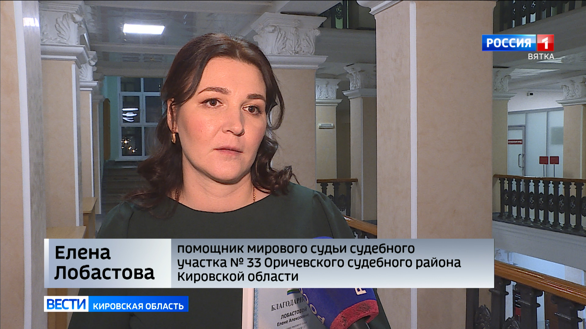 В рамках празднования 25-летия мирового суда в Кировской области Александр Соколов вручил почетные грамоты и благодарности губернатора Кировской области действующим судьям и сотрудникам аппаратов мировых судей. Среди награжденных была и Елена Лобастова. Она работает помощником мирового судьи Оричевского судебного района.