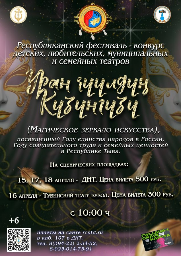 Фестиваль‑конкурс любительских, муниципальных, семейных и детских театров «Магическое зеркало искусств» пройдет в Кызыле с 15 по 18 апреля. В программе – десятки спектаклей, посвящённых миру буддийских легенд и мифов. На сцене оживут сказания тувинского, бурятского и калмыцкого народов, раскрывая богатство культурного наследия и духовных традиций.
