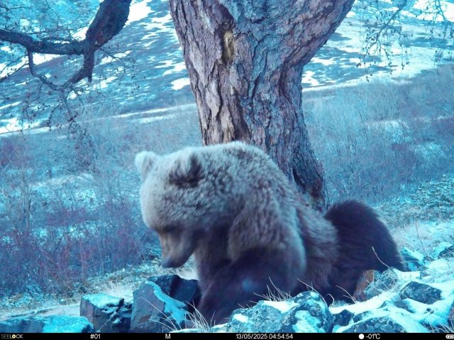Бурый медведь попался в фотоловушку заповедной зоны «Монгун-Тайга» в Туве