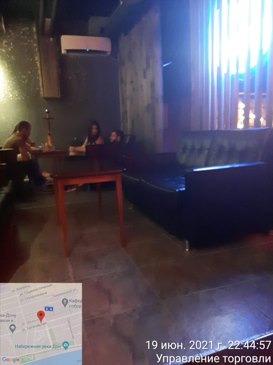 По его словам, нарушения выявлены в следующих объектах потребительского рынка: рестораны «Южный» (ул. Левобережная, 5д) и «Наргиль» (ул. Максима Горького, 151), клуб «Эмбарго» (ул. Левобережная, 72), бары «Калао» (ул. Селиванова, 45), «НЕДОБАР» (пр. Сельмаш, 20), кальян-бары «Багдад» (пр. Буденовский, 42) и «Time to smoke» (ул. Тургеневская, 43), караоке-бар «Соловей» (ул. Максима Горького, 151).