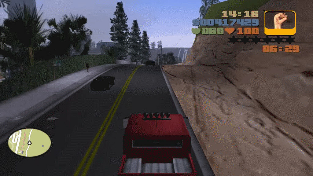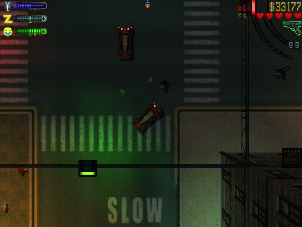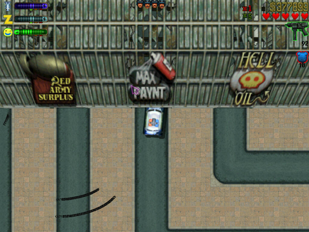 Если игрок совершал базовые правонарушения (например, давил пешеходов), то его могли просто арестовать и оставить у полицейского участка без оружия, множителя денег и прочих радостей. В крайнем случае с 4 уровнем угрозы полиция могла убить игрока, хотя уже тогда были возможности уйти от погони, перекрасив автомобиль, например. Также разработчики реализовали просто невиданный на то время автопарк — от легковых автомобилей до грузовиков и мотоциклов. У каждого транспорта были свои характеристики и особенности (грузовик выдерживает в два раза больше попаданий, чем легковой автомобиль), плюс при желании можно было воспользоваться метро для быстрого перемещения. Уже тогда в игре появилась возможность слушать радиостанции в транспортных средствах — для релиза 97 года это нечто невероятное.