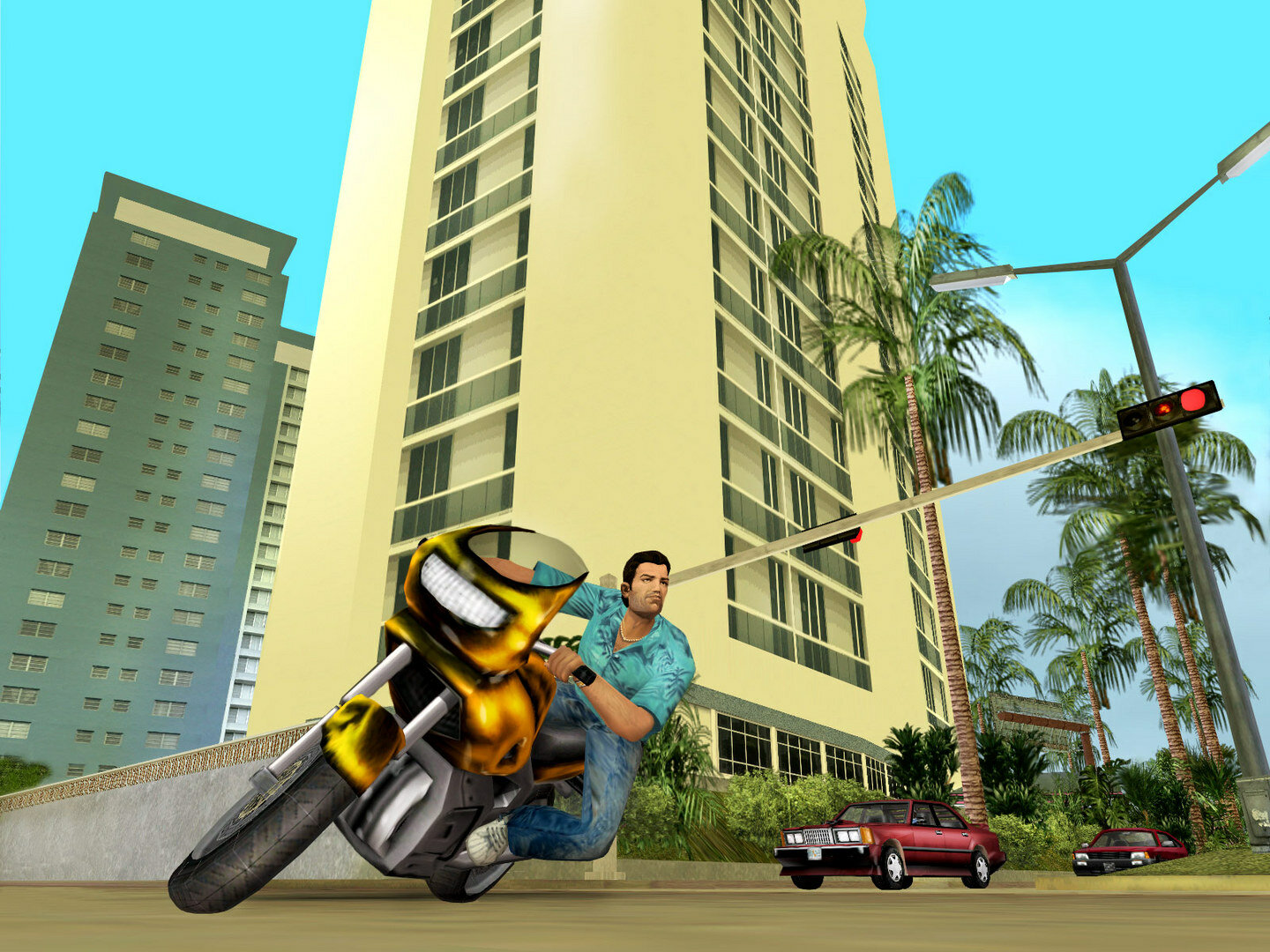 Более того, разработчики воспользовались очень простой хитростью — вместо унылого и серого Либерти-Сити из третьей части они отправили игрока на очень яркий и тёплый Вайс-Сити. Графика стала более приятной, уютной и насыщенной, больше красок и возможность путешествовать между островками расширили глубину погружения в увлекательные приключения Томми Версетти. Конечно, полицию вновь прокачали — теперь она использовала ещё больше техники, и скрыться на последнем уровне розыска было проблематично, плюс искусственный интеллект позволил создать атмосферу кипящей жизни в вымышленном городе. Всё это вместе с отличной оптимизацией сыграло свою роль.