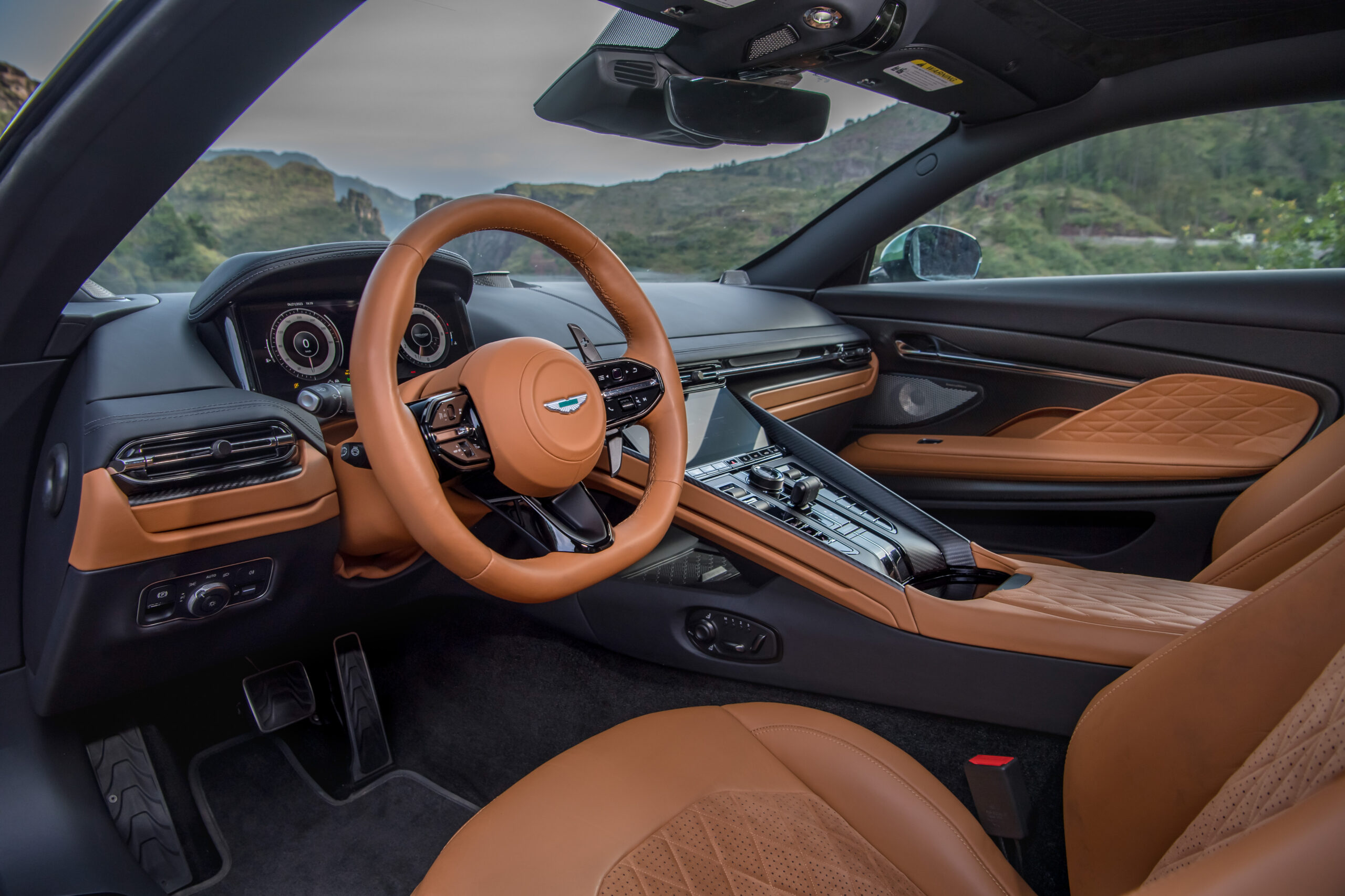 Step inside the DB12, and you’re greeted with a world of fine craftsmanship. The interior design has been meticulously crafted to create an ambiance of luxury and comfort. Clean lines and a sense of spaciousness dominate the cabin, providing an inviting environment for both driver and passengers.