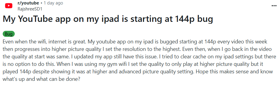 Son bir neçə gündür ki, YouTube istifadəçiləri dünya üzrə video izləmə zamanı problemlərlə qarşılaşır. Xidmət, başa düşülməyən bir səbəbdən, videoları ən aşağı keyfiyyətdə açır. Bu davranış yalnız bəzi platformalarda müşahidə olunur.