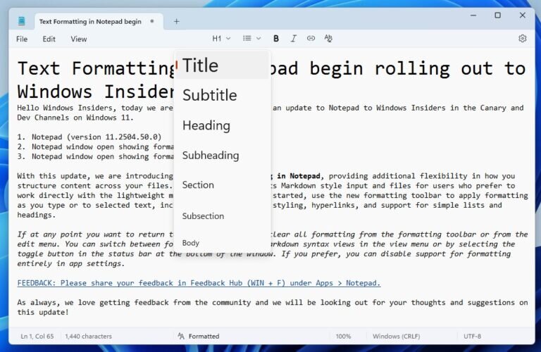 На днях компания Microsoft сообщила о начале тестирования обновлённого «Блокнота» в операционной системе Windows 11. Разработчики добавили возможности форматирования, поддержку гиперссылок и Markdown, превращая приложение, как заметили некоторые пользователи, в подобие текстового редактора WordPad. И многим такая трансформация пришлась не по вкусу.
