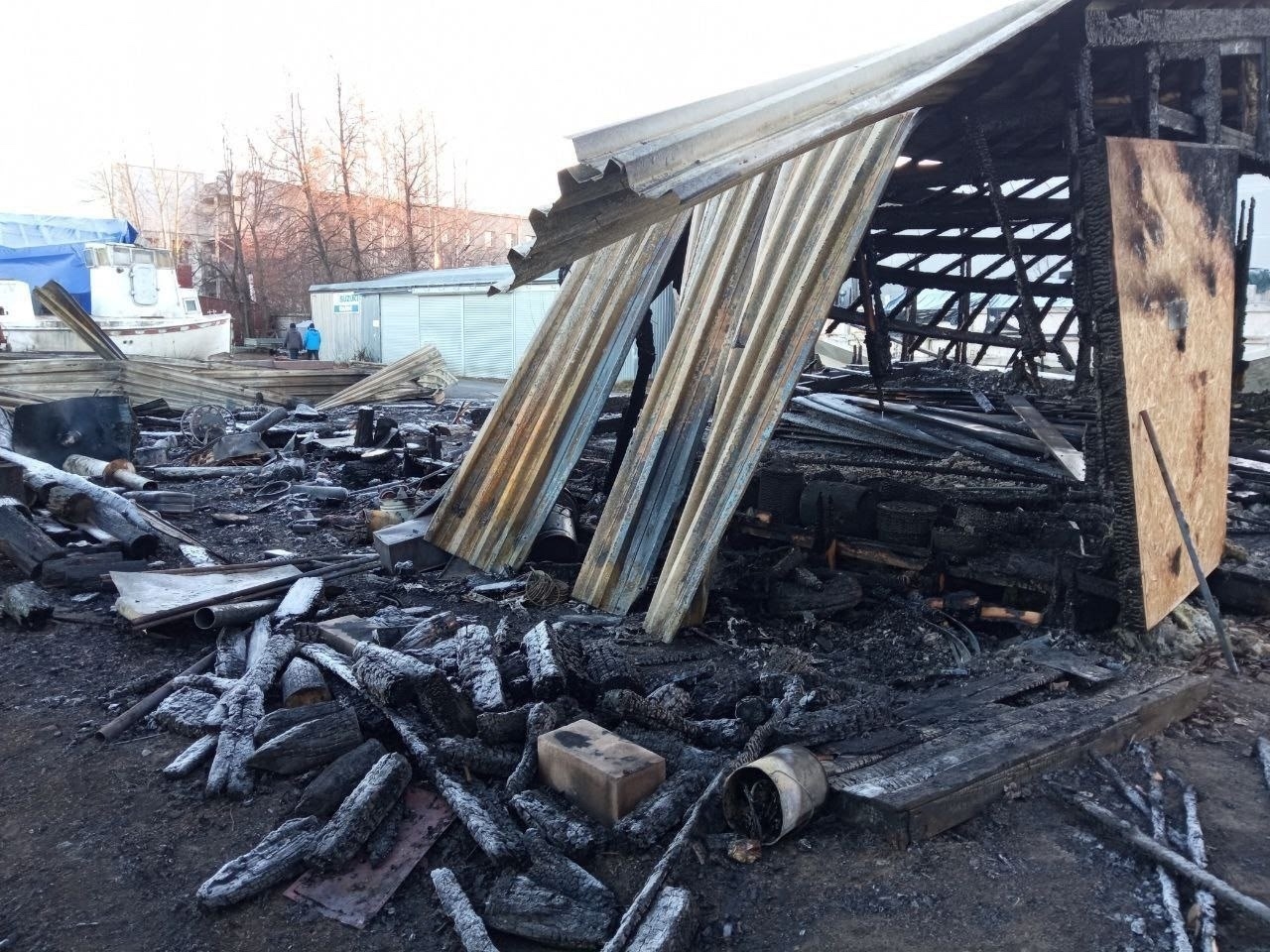 Появились фото сгоревшего дотла здания «Ботного дома» музея «Полярный Одиссей» в Петрозаводске.