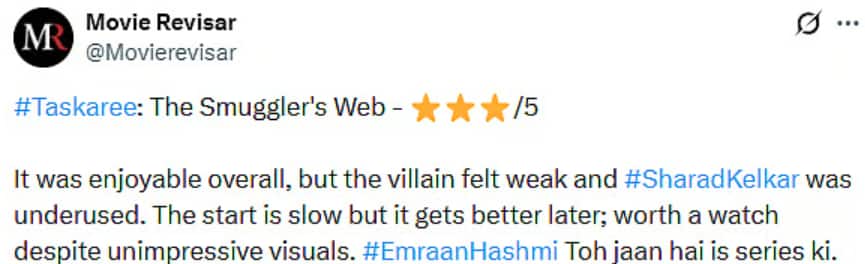 Taskaree The Smuggler's Web X Review: Netizens laud Neeraj Pandey for..., call Emraan Hashmi-starrer...