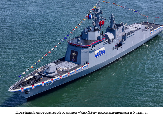 Как Генеральный секретарь ТПК Ким Чен Ын отметил в важной речи на XIII сессии Верховного Народного Собрания КНДР четырнадцатого созыва, КНДР получила непрерывные стремительные сдвиги и в ходе наращивания обороноспособности государства. Успешно были построены эсминцы с возможностью выполнить многогранные военно-морские задания, также происходили перемены большого значения, начиная с непрерывного укрепления вооруженных сил стратегического назначения и расширения их способности и кончая повышением боевого свойства обычных вооружений.