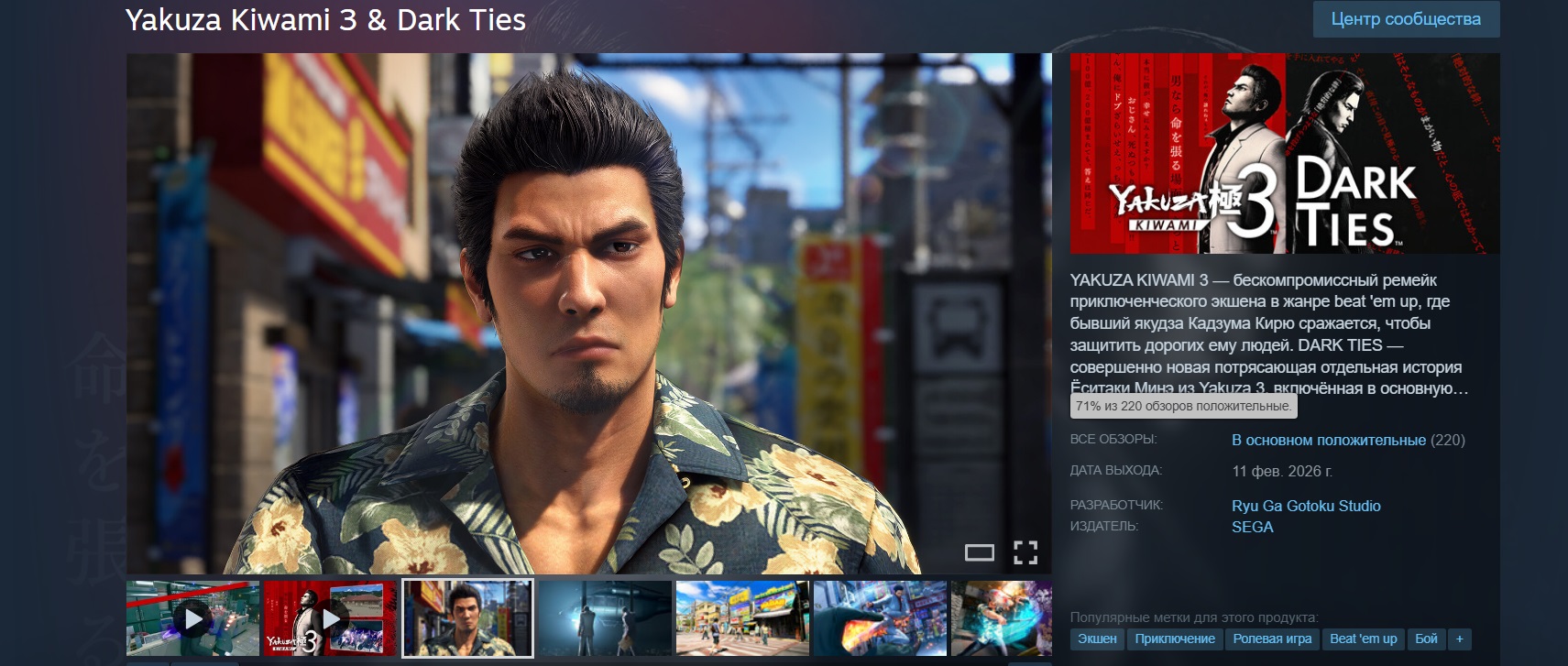 Yakuza Kiwami 3 и Dark Ties вышли и собирают в основном положительные отзывы в Steam