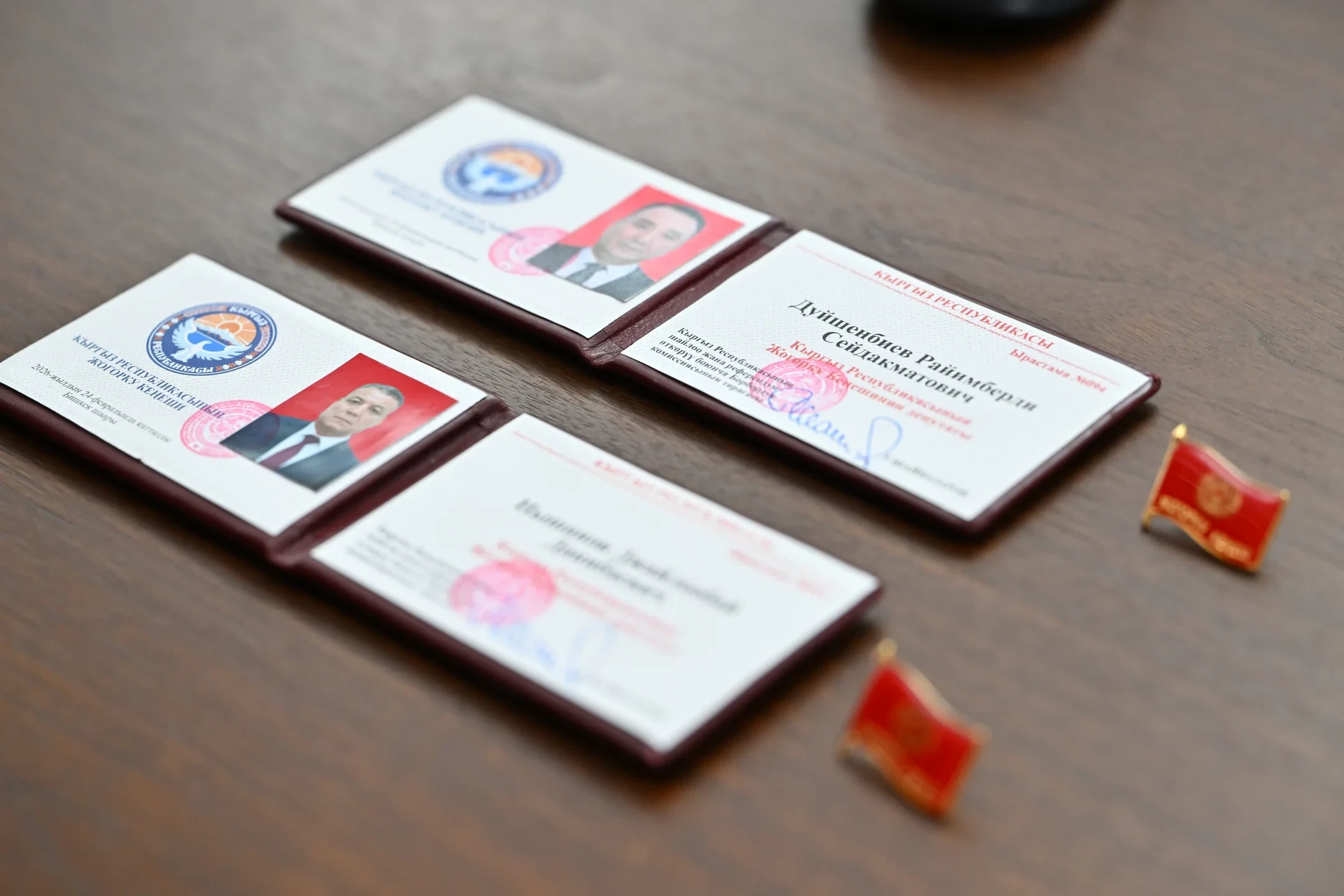 В соответствии с официальной информацией, Дуйшенбиев и Нышанов были зарегистрированы в качестве депутатов по своим округам, и им были вручены удостоверения и нагрудные знаки депутата.