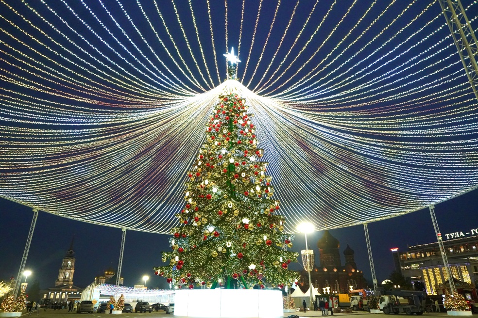 Новую елку на площади Ленина в Туле официально открыли 5 декабря 2025 года. Старая елка при этом "переехала" на улицу Металлургов.