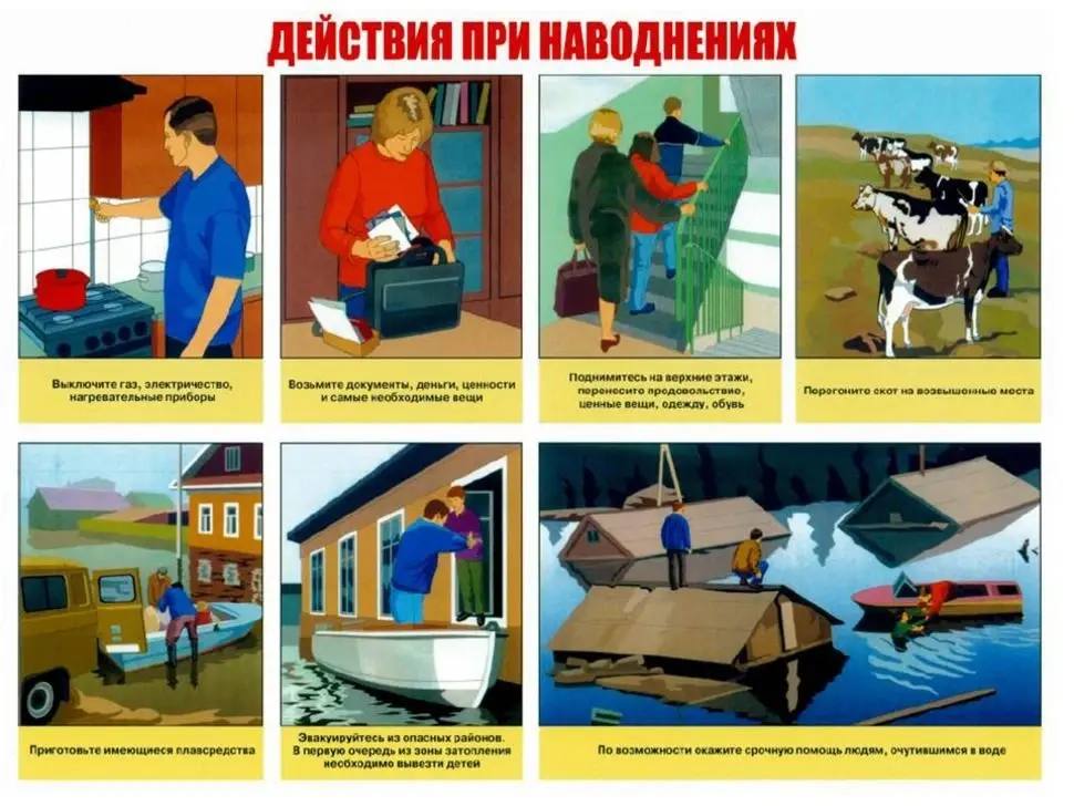 — перенести ценные вещи и продукты из подвалов и погребов на верхние уровни