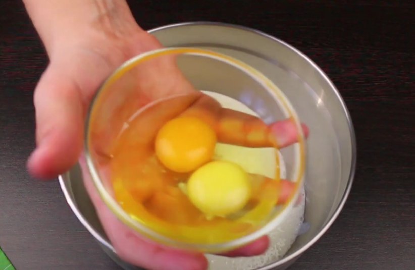 ШАГ 1: В миску вливаем кефир (комнатной температуры). Добавляем к нему соду и перемешиваем. Оставляем постоять на 10 минут.