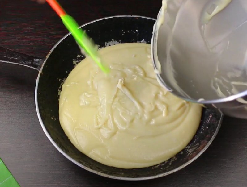 ШАГ 4: Перекладываем тесто в сковороду или форму для выпечки.