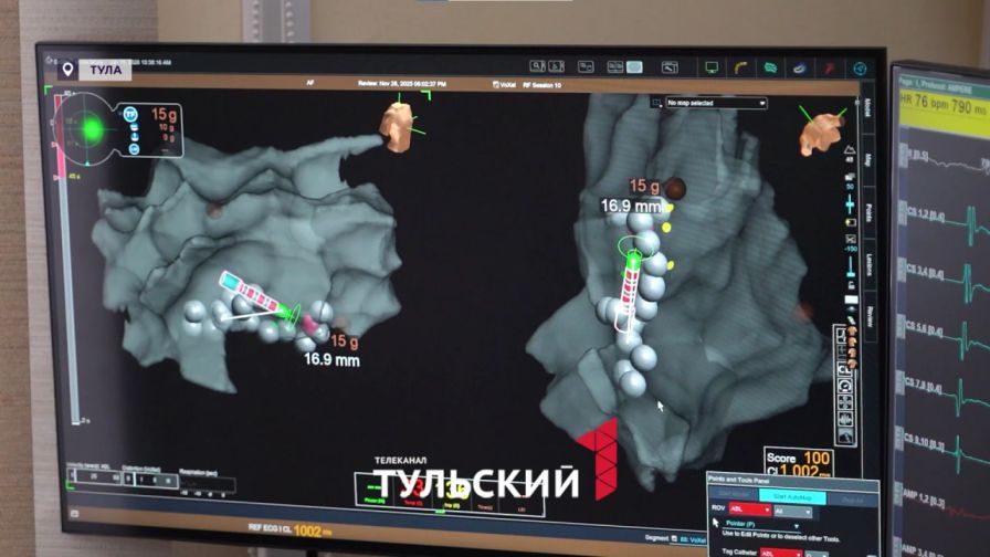 В этом кабинете нет привычной медбригады, только хирург и пациент. Операцию  они проводят вместе. Пока врач подводит катетер прямо к сердцу через вену в ноге, пациент описывает свои ощущения. Тем самым специалист может контролировать его состояние без специальных мониторов. Это стало возможным благодаря малоинвазивным методам лечения. В Тульской областной клинической больнице их применяют даже во время таких манипуляций. В том числе при сердечной аритмии.