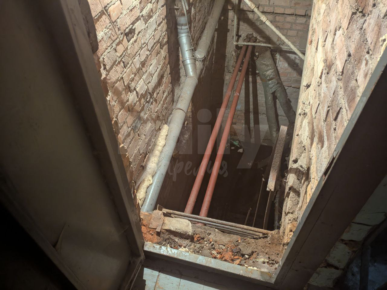 Дверь в подвал первого подъезда оставили открытой: сейчас туда может пройти кто угодно. Единственная преграда — ужаснейшая вонь, от которой щиплет глаза и начинает мутить. Оставаться там не хочется ни одной лишней секунды. Что происходит в подвале разглядеть сложно, но похоже, что пол затоплен нечистотами.
