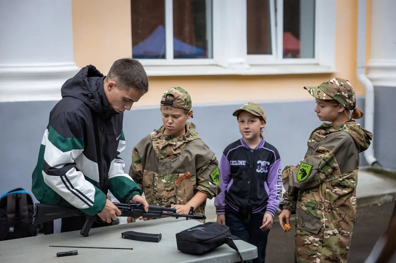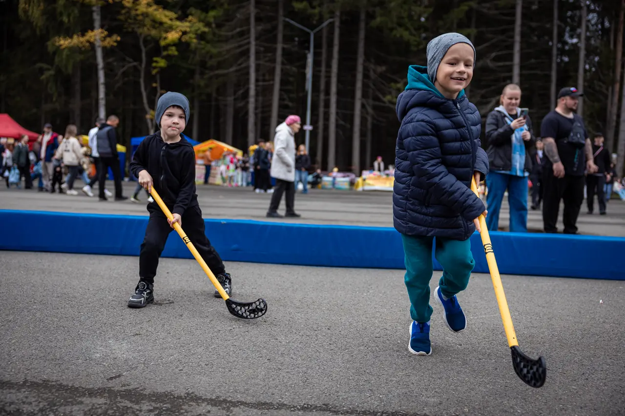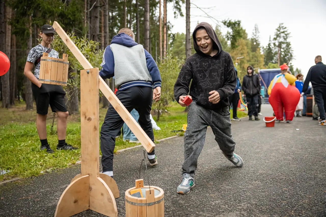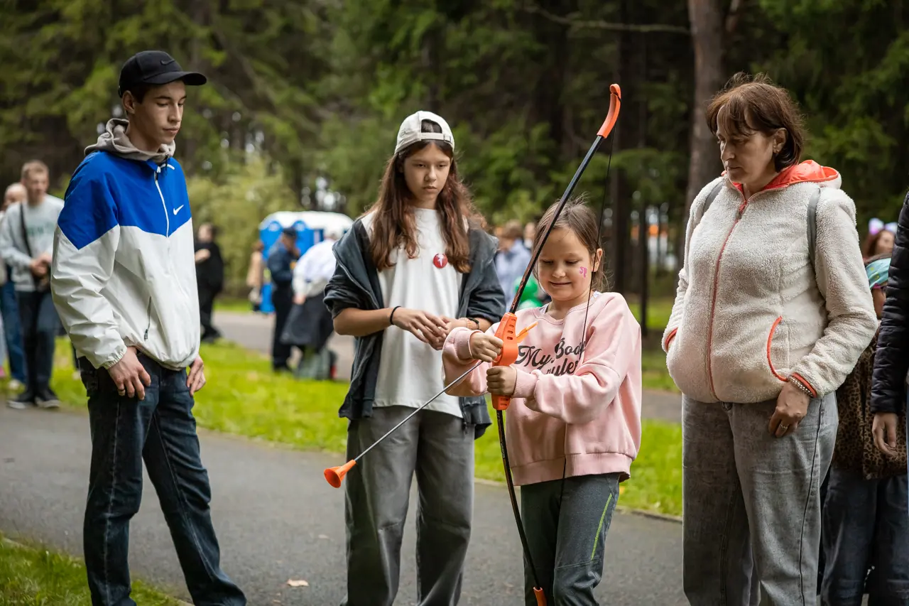 В начале праздника на главной площади развернулись детские спортивные площадки. Ребятам предлагали покататься на роллерных лыжах, поиграть в хоккей на асфальте, попрыгать, побегать и даже собрать автомат Калашникова. В боковой аллее парка разместились более интеллектуальные зоны: здесь можно было создать компьютерную программу, сыграть в мемо, посоревноваться в гигантских крестиках-ноликах, разукрасить огромную открытку-поздравление, пострелять из лука, поиграть в рыбалку и сделать аквагрим. За участие в некоторых играх детям вручали сладкие призы.