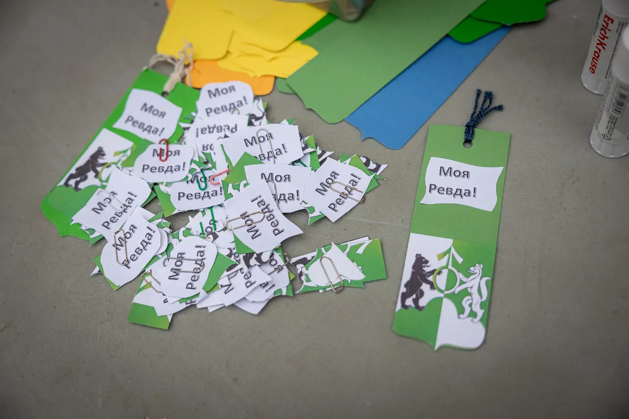 Сотрудники ЦДО предлагали создать огромную книгу Ревды – нужно было разукрасить животное, которое обитает в наших краях, или местную достопримечательность и вклеить в книгу. Здесь же детишкам предлагали смастерить книжную закладку с гербом Ревды.