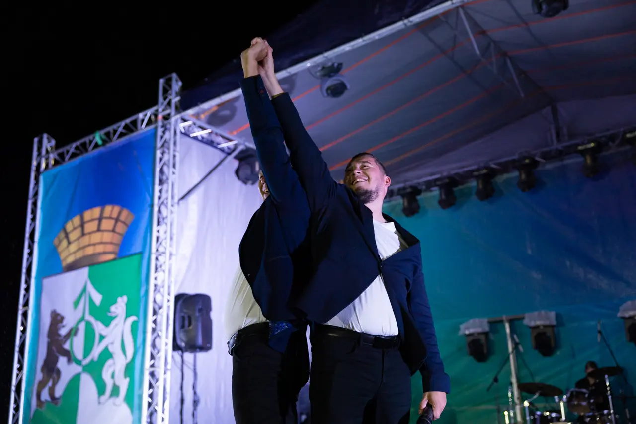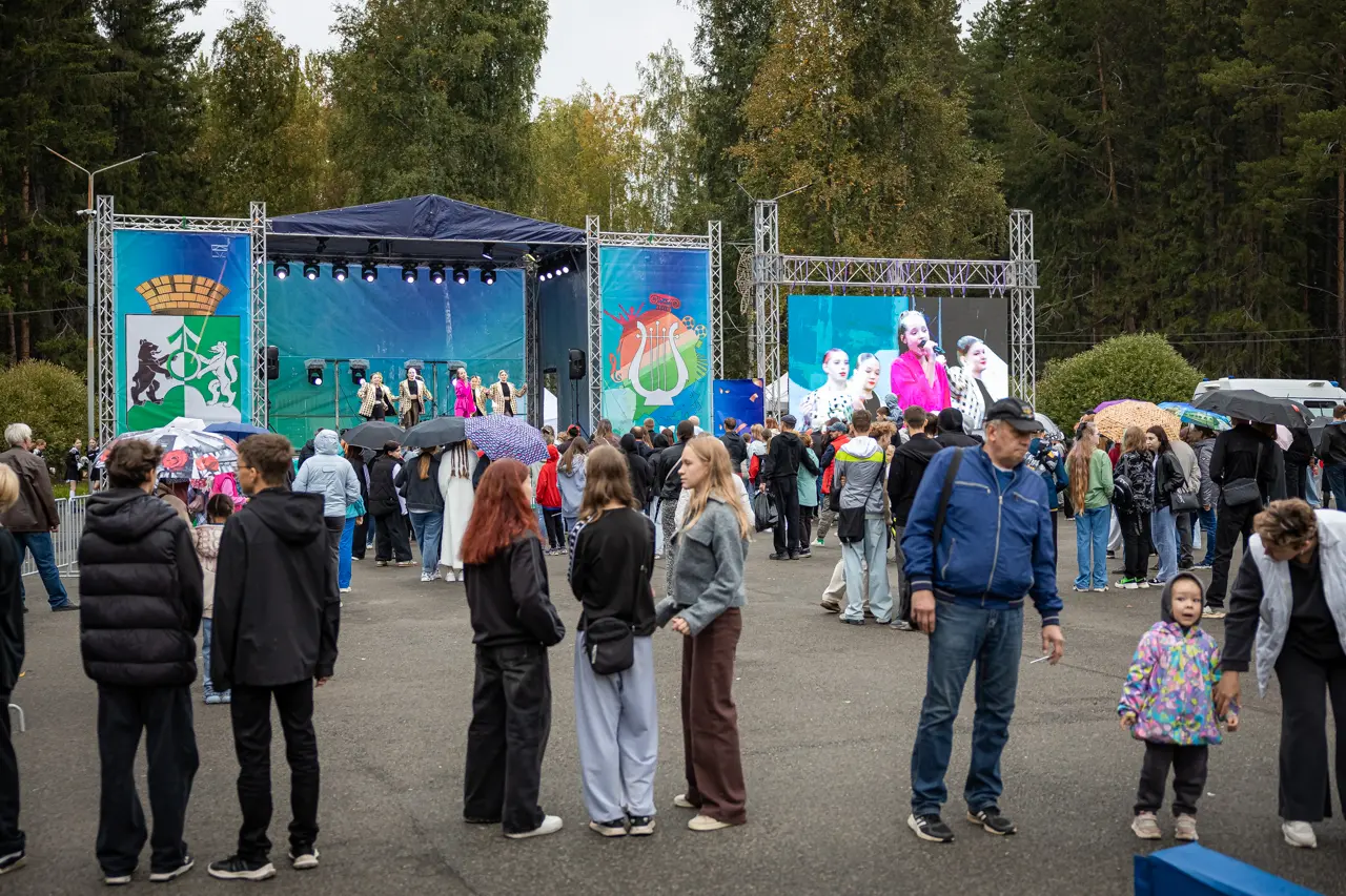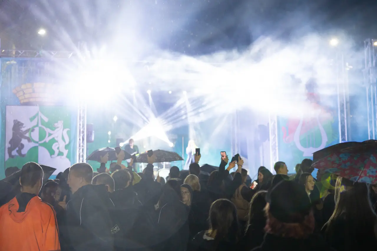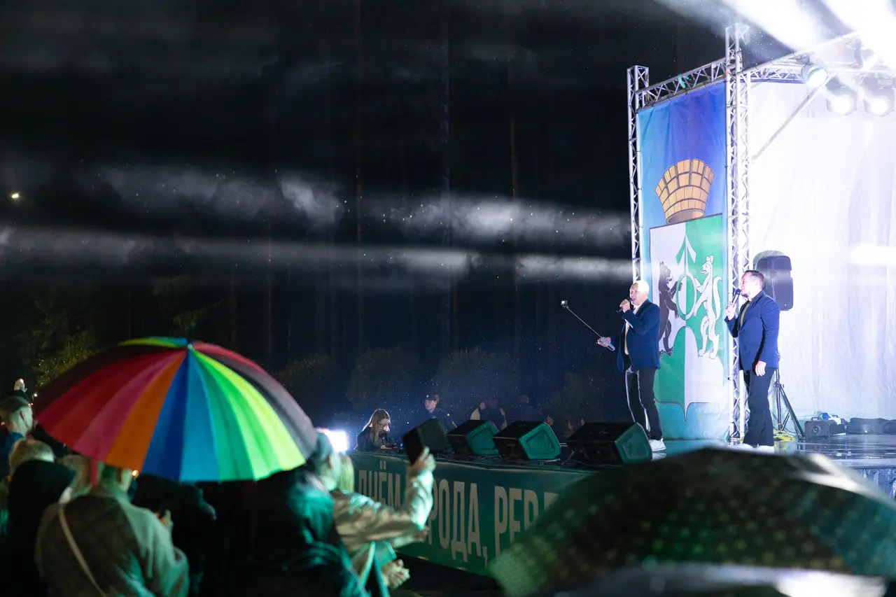 В День города ревдинцы хором пели Гимн России и танцевали под дождем