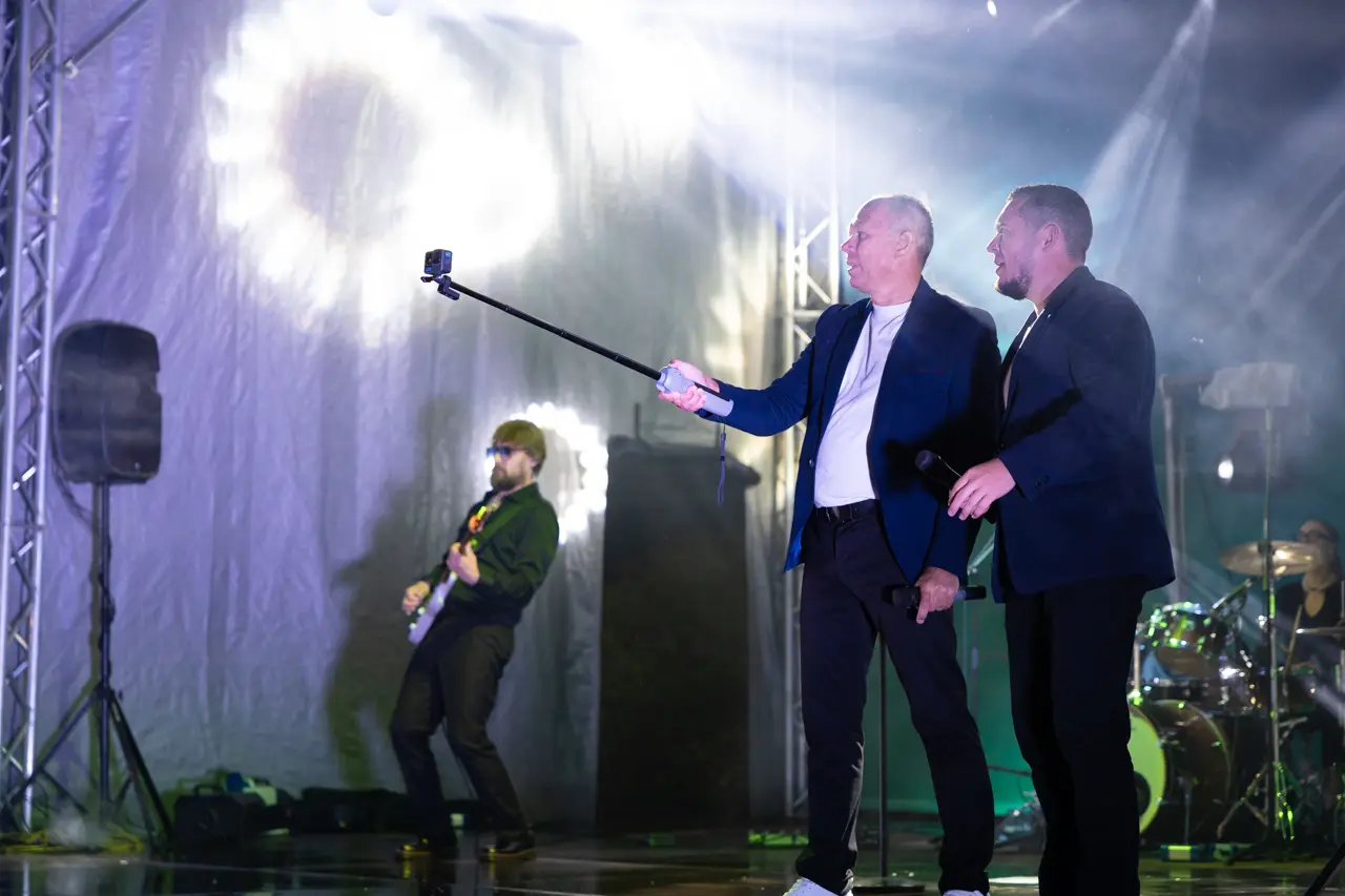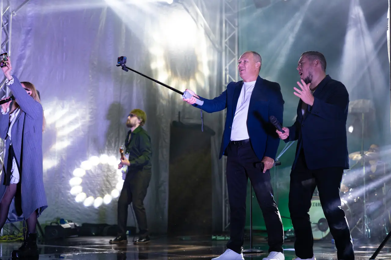 В это время неподражаемые ведущие праздника Иван Сазанов и Дмитрий Тихонов развлекали публику: просили зрителей исполнить песни, запускали «волну», спускались к зрителям, чтобы пожать им руки, воспроизвели статую «Рабочий и колхозница» и даже признались в любви всем девушкам Ревды. Зрители с удовольствием сами себе выбирали музыкальный репертуар и хором пели такие песни, как «Батарейка» группы «Жуки», «Жить в кайф» Макса Коржа и даже исполнили Гимн России.