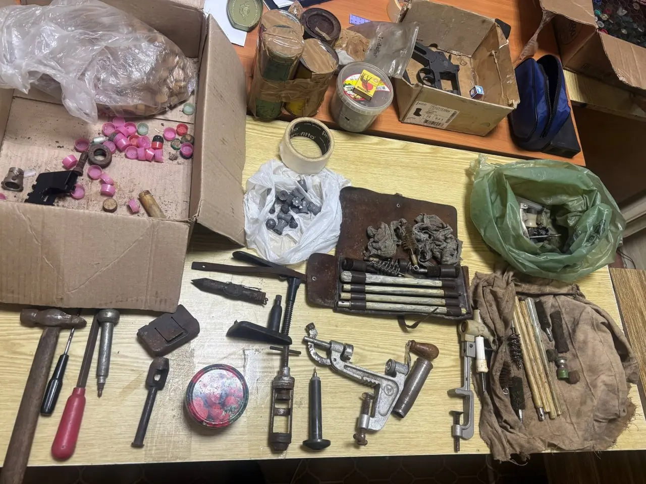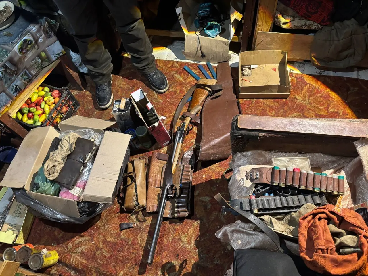 Сначала в лесном домике на территории ревдинского охотхозяйства в 12 км от Краснояра полицейские обнаружили два двуствольных ружья и патроны, а также почти килограмм пороха (считается взрывчатым веществом).