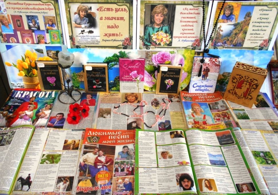 Гостям было приятно узнать о том, что Крым у «рожденной в СССР» Ларисы Рубальской вызывает ностальгически-трогательные воспоминания: «Прошлой осенью в Крыму я поверила ему. Помню, ночь тогда была звездная…» («Мужчинам верить можно»). Прожив удивительно многогранную жизнь, Лариса Рубальская по-прежнему остается одним из самых узнаваемых любимых песенных авторов нашей необъятной страны. В ее творческой копилке – свыше 600 стихотворений и текстов к песням, 5 сборников авторской лирики и т.д. Информационным сопровождением мероприятия стала книжная выставка «Есть цель, а значит надо жить!».