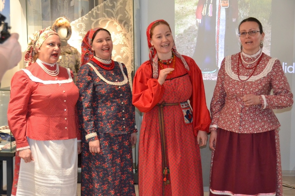 На церемонии открытия выставки гости не только рассматривали работы, но и узнали много нового о традициях предков. Руководитель саратовской студии народного творчества «Отрада» Татьяна Осипова, чей коллектив исполнил народные песни, рассказала любопытную историю происхождения фразеологизма «крутить хвостом».