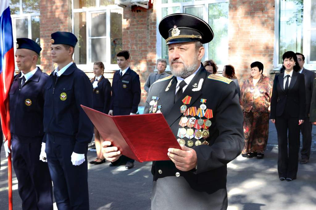 В Клятве кадета, которую зачитал первоклассникам школьный учитель основ безопасности и защиты Родины подполковник запаса Анатолий Вадольский, есть такие слова: «Я, юный гражданин России, вступая в ряды кадетов, торжественно обещаю: горячо любить свою Родину, свой народ, быть преданным своему Отечеству, добросовестно учиться, готовить себя к служению Родине, изучать и знать историю Отечества, быть дисциплинированным, честным и правдивым, ответственным за свои поступки, дорожить дружбой, кадетским братством, быть достойным высокого звания кадета и верным своему слову».
