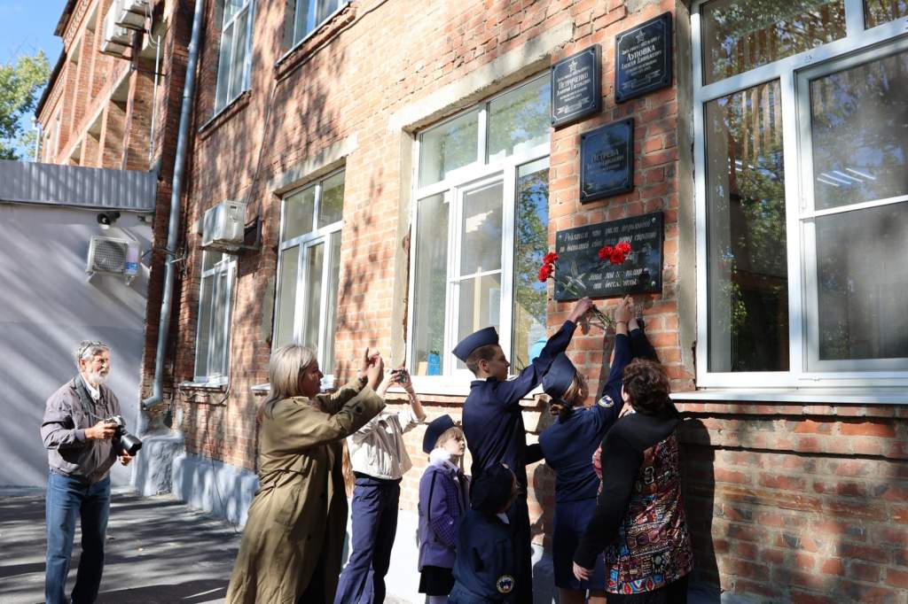 В школе есть хорошая традиция: чтить память своих выпускников, которые отдали жизнь, защищая Отечество. В память о ребятах, погибших при исполнении воинского долга, Дмитрии Петриченко, Алексее Луповке, Алексее Нетребе, Вячеславе Микове на школьной стене у входа размещены мемориальные доски, к ним возложили красные гвоздики.