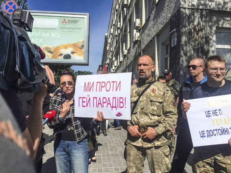 "Мирный санкционированный митинг националистов и представителей религиозных общин против ЛГБТ-парада жестко разогнали тактики Зозули и Необеркут".