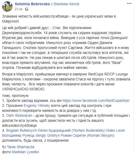 В Мариуполе подполковнику сломали челюсть за то, что он попросил украиноязычное меню
