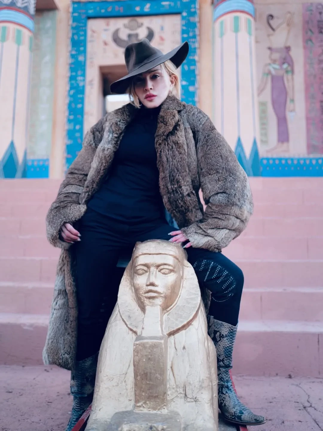 Певица устроила семейную фотосессию в пустыне. На снимках она позирует в шубе, солнцезащитных очках, ковбойской шляпе и сапогах, а также других нарядах. На фото также запечатлены: 25-летний сын Рокко Ричи от бывшего мужа Гая Ричи, приёмные дочери Мерси, Стелла и Эстер, а также приёмный сын Дэвид Банда и бойфренд Аким Моррис. "Марокко. Я не могу отпустить тебя!" — подписала фото поп-звезда.