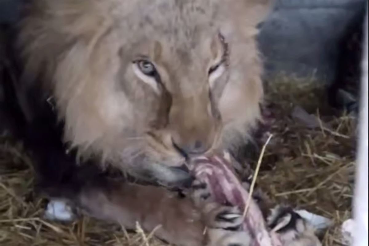Льва Нео, раненного при атаке дронов ВСУ на зоопарк прифронтового города Васильевка Запорожской области, из временного помещения выпустили в восстановленный уличный вольер. Аппетит и состояние у хищника нормальные…